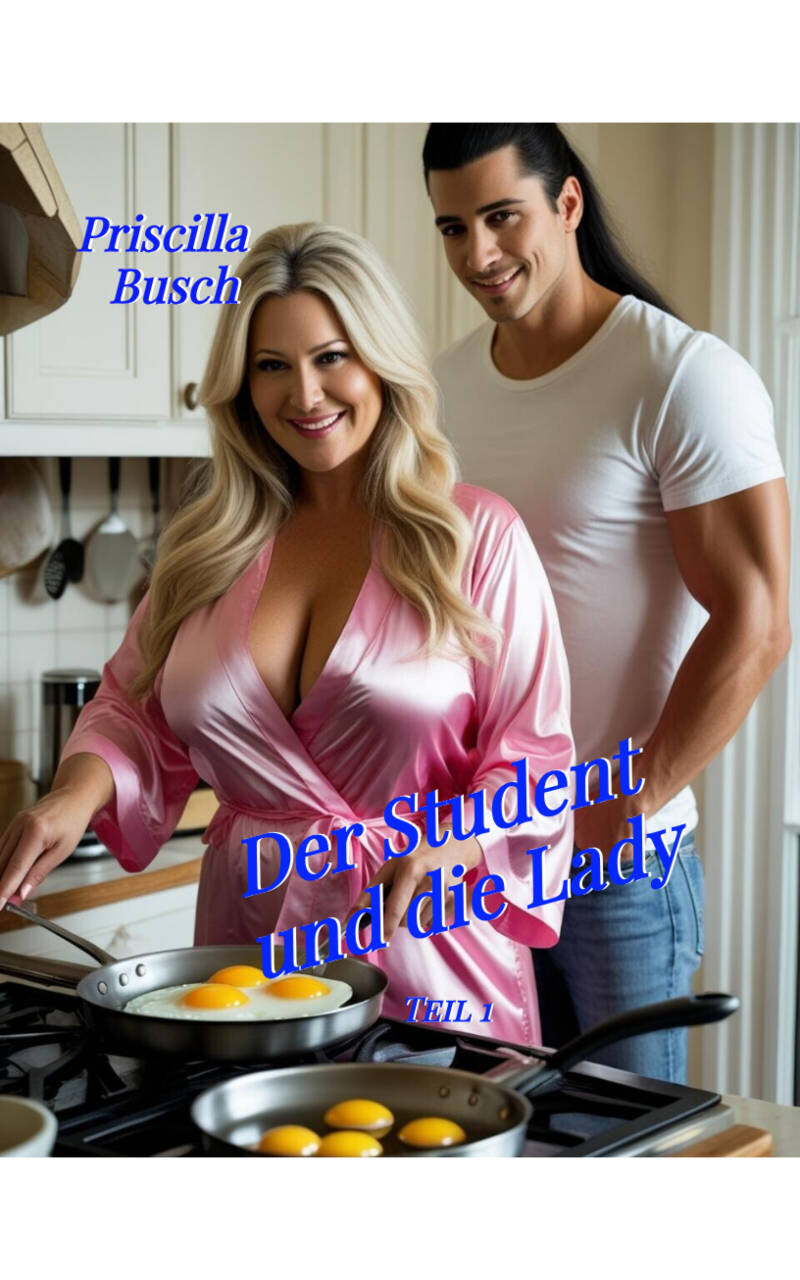 In der Küche kommen sie sich näher. Er tritt hinter sie, streift ihr das Negligee über die Schultern, tastet nach den Brüsten. Sie reibt sich an ihm, ein erster Kuss, Keuchen, Lust, Verlangen - die Dinge nehmen ihren Lauf zwischen der reichen MILF und dem jungen Studenten